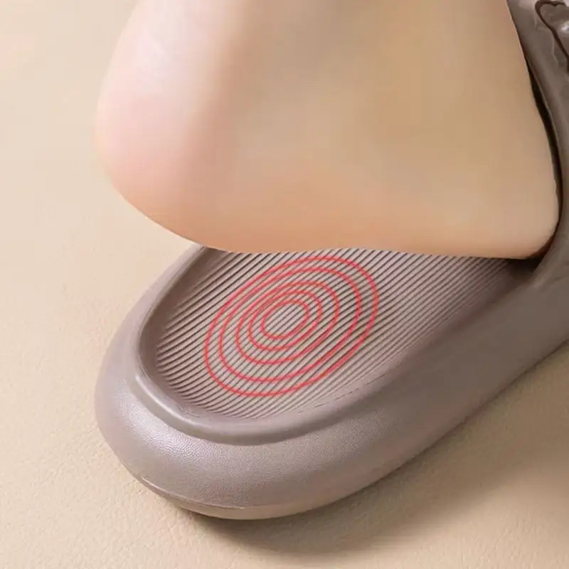 Ставањето на нашите удобни летни домашни сандали е удобно и удобно, а искуството за носење е многу добро. Текстурираната надворешна плоча е нелизга и анти-пад, а конкавната мидала ги штити нозете. Има високи својства против лизгање, не се лизга надолу на наклонот од 45 °, а дизајнот на масажа на задното стапало може да ги масира стапалата на стапалата во секое време за да го олесни заморот.
