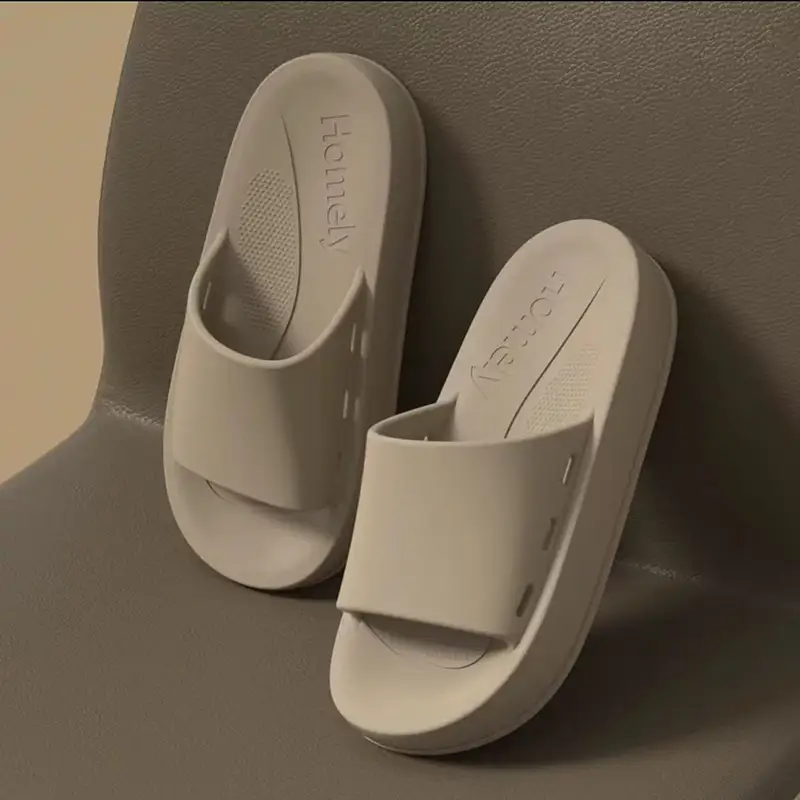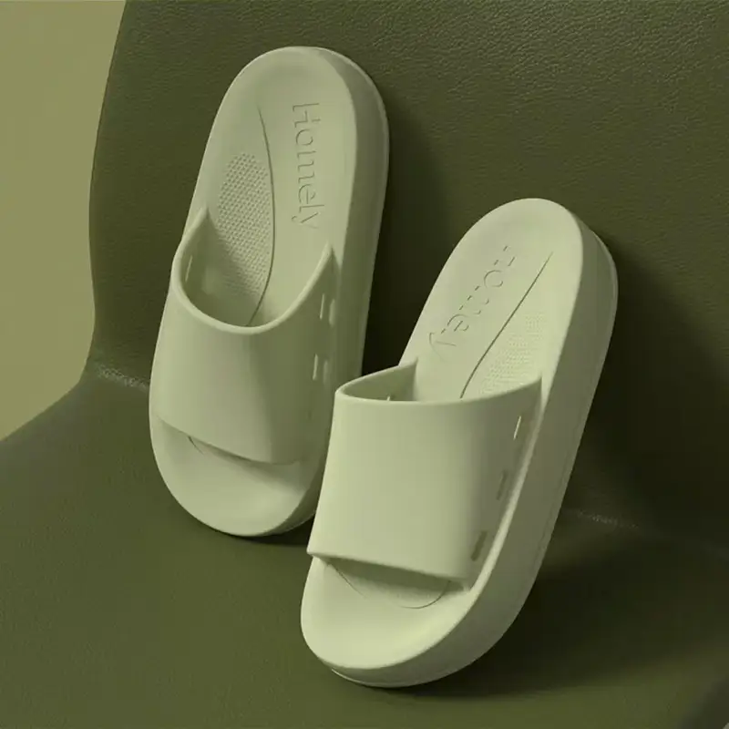 Нашите влечки од домашни серии се изработени од лесен материјал EVA, кој е лесно да се носи без тежина, мека и поддршка. Тие користат текстури против лизгање на гуми за цврсто зафаќање на земјата и спречување на лизгање. Чевлите се тонови со низок клуч, што покажуваат воздржан и едноставен квалитет.